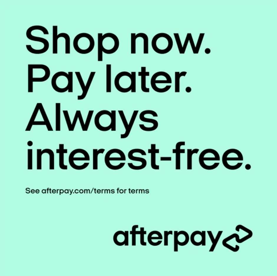 Shop all of our products with the Afterpay option at checkout. Have your order broke down into 4 easy interest free payment!!